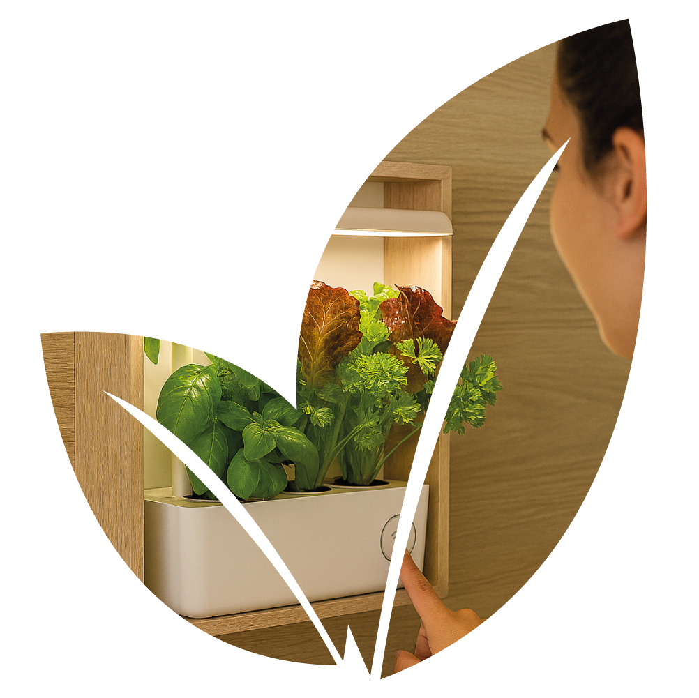 Potager d'intérieur connecté Découvrez Cultive, le potager d'intérieur connecté pour cultiver facilement vos herbes aromatiques et légumes chez vous. Économe en énergie, design et fabriqué en France. Livraison rapide. Simplicité et innovation Technologie LED, irrigation automatique et application mobile. Faites pousser herbes aromatiques et mini-légumes sans effort. 100% Made in France, 100% éco Conçu et fabriqué en France avec une consommation minimale d'énergie. Rejoignez la communauté des jardiniers urbains ! woman holding tomatoes woman holding salad group-48095444-1-6658412859570.webp